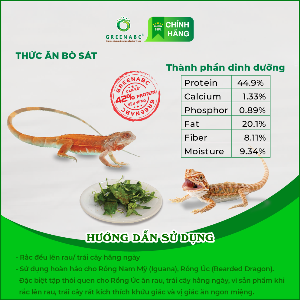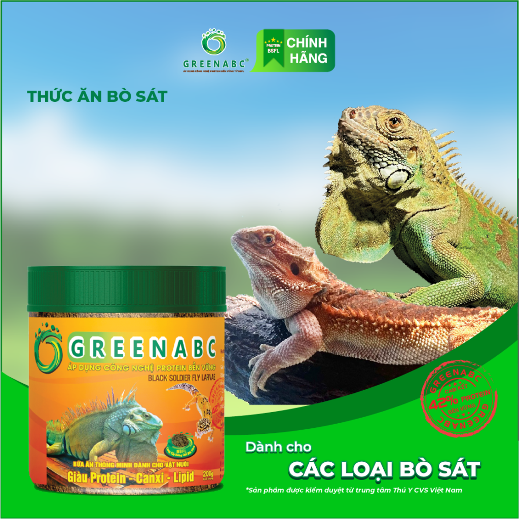 Thức ăn Bổ Sung Dinh Dưỡng Bò Sát GREENABC là dòng sản phẩm thức ăn bổ sung dinh dưỡng dành cho các loại bò sát: Rồng Nam Mỹ ( Iguana), Rồng Úc ( Bearded Dragon), Thằn Lằn Da Báo ( Leopard Gecko), Chameleon, …