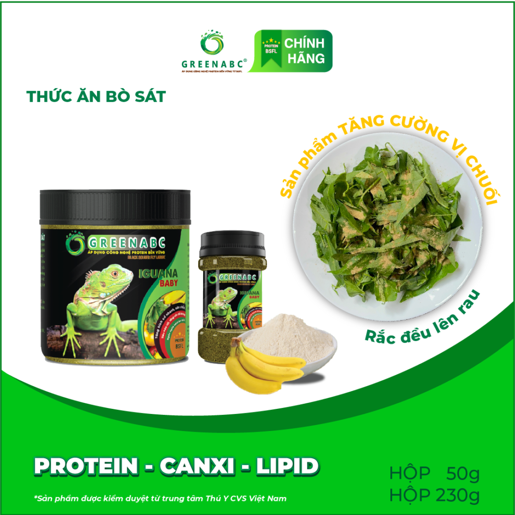 Thức ăn Rồng Nam Mỹ ( Iguana) Baby từ Mới Nở đến 9x GREENABC Vị Chuối là dòng sản phẩm thức ăn cao cấp được bổ sung thêm Chuối cung cấp đầy đủ các chất dinh dưỡng.