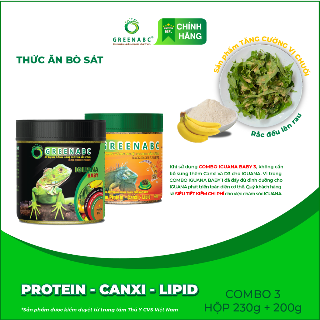 – Khi sử dụng Combo 1 Rồng Nam Mỹ ( Iguana) Baby Vị Chuối, không cần bổ sung thêm Canxi và D3 cho Rồng Nam Mỹ, vì trong Combo 1 Vị Chuối đã đầy đủ dưỡng chất. Quý Khách Hàng sẽ SIÊU TIẾT KIỆM CHI PHÍ cho việc chăm sóc cho Rồng Nam Mỹ