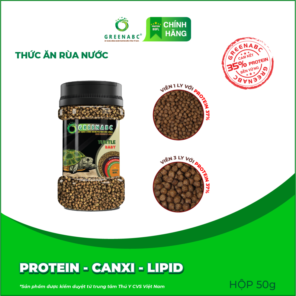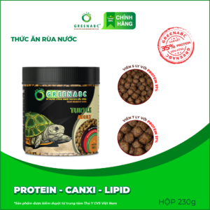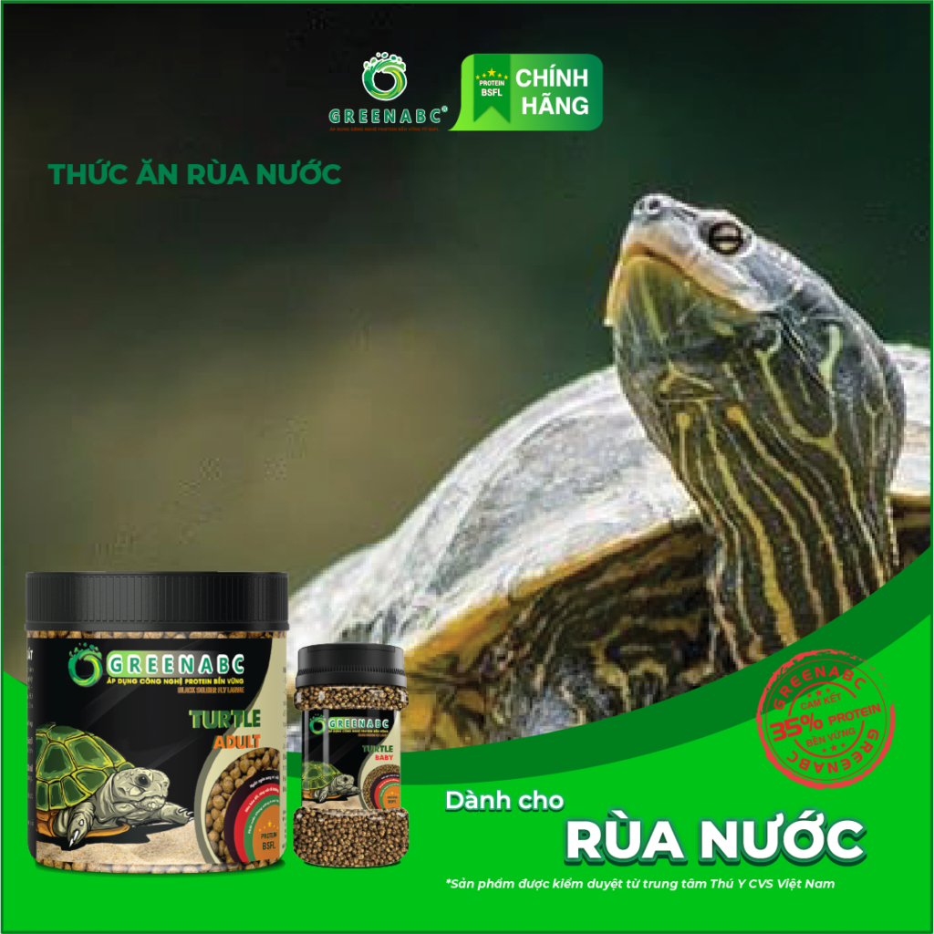 Thức ăn Rùa Nước GREENABC là dòng sản phẩm thức ăn cao cấp có hàm lượng Protein > 37%.