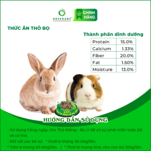 Thức ăn Thỏ Bọ GREENABC là dòng sản phẩm thức ăn cao cấp. Sản phẩm dùng ăn hàng ngày, giúp cơ thể phát triển toàn diện, khỏe mạnh và linh hoạt.